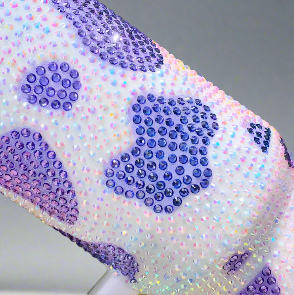 - Eye-catching rhinestone-covered cow print design